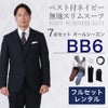 6. 【BB6サイズ】メンズ ベスト付ネイビー無地スリムスーツ7点セット 秋冬用レンタルスーツ