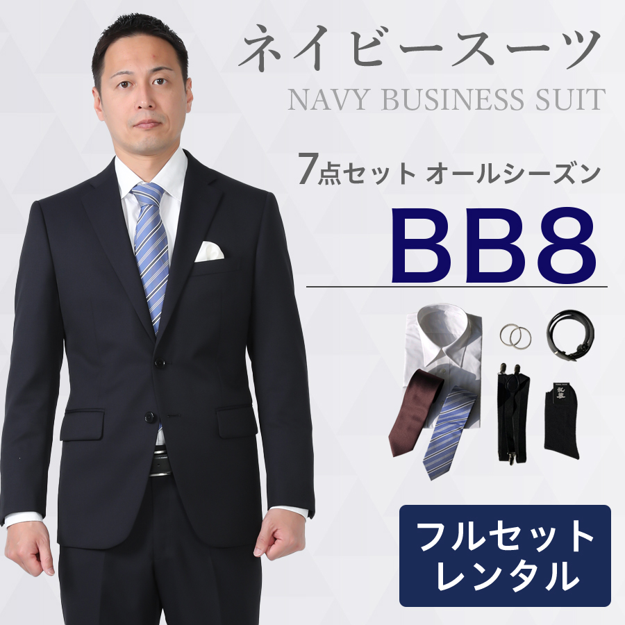 【レンタル】BB体ネイビースーツ7点セット [男性用] [レンタル スーツ] [スーツ レンタル] [ビジネス] [無地] [リクルート] [面接用] [卒業式] [結婚式] [成人式] [3泊4日] [翌日配送] [当日発送] [送料無料] [FOL-1215302B-BB-F]