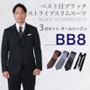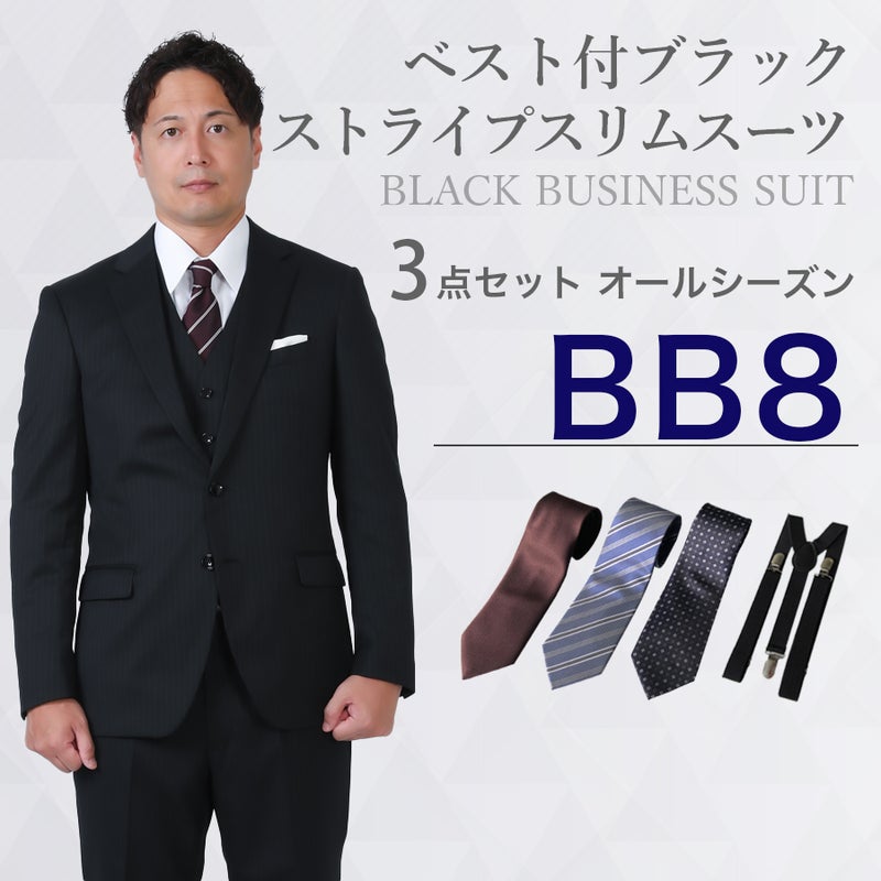 6. 【BB8サイズ】メンズ ベスト付ブラックストライプスリムスーツ3点セット 秋冬用スーツレンタル
