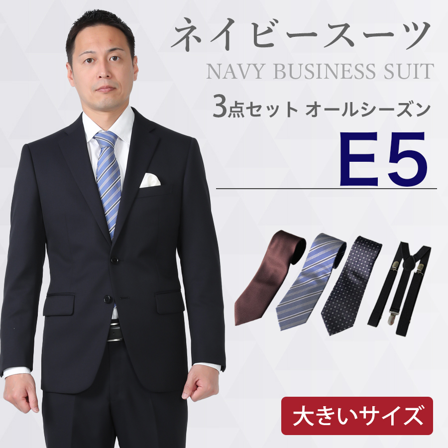 6. 【E5サイズ】メンズ 大きいサイズ用ネイビースーツ3点セット 喪服・礼服・フォーマルレンタル