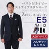 6. 【E5サイズ】メンズ 大きいサイズ用ベスト付ネイビーストライプスリムスーツ7点セット 秋冬用スーツレンタル