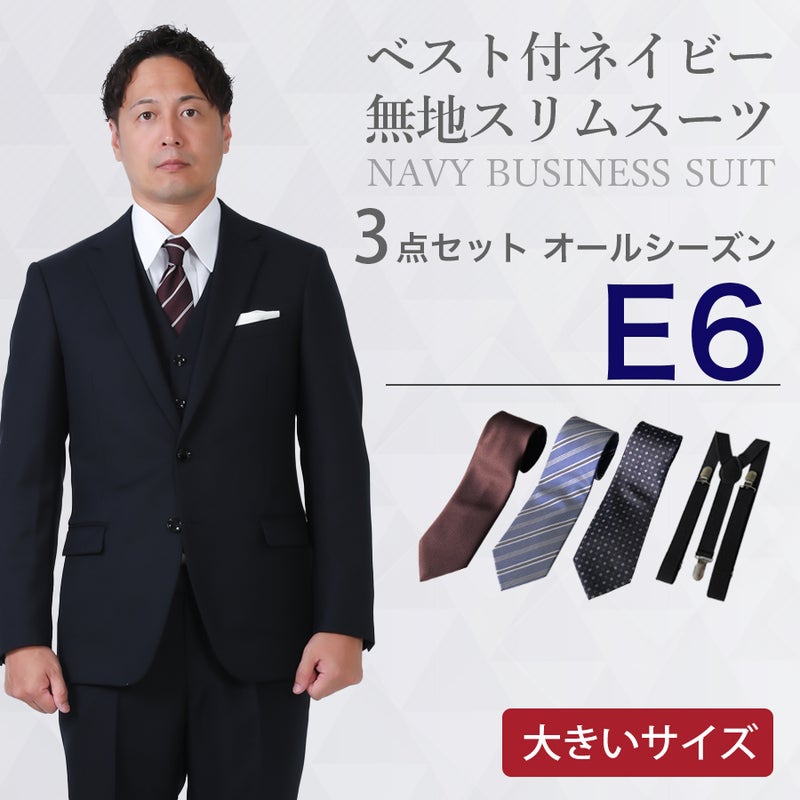 ★【大きいサイズ用】さまざまなシーンに対応するベスト付ネイビー無地スーツ・ウール混紡生地を使用し、柔らかさと質感も美しく晴れの日にぴったりの1着です。・かたちは細身のすっきりとしたシルエット。・仕事からリクルート、晴れの日(授業参観、七五三、成人式、結婚式)などなど幅広いシーンで活躍してくれること間違いありません!!