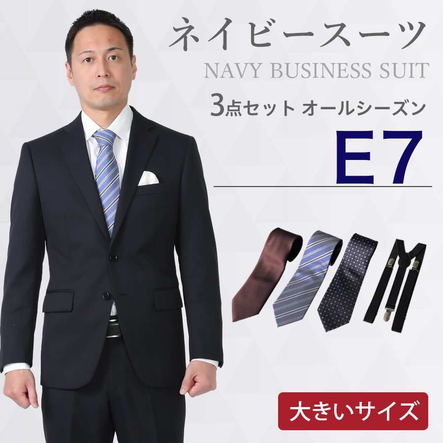 6. 【E7サイズ】メンズ 大きいサイズ用ネイビースーツ3点セット 喪服・礼服・フォーマルレンタル