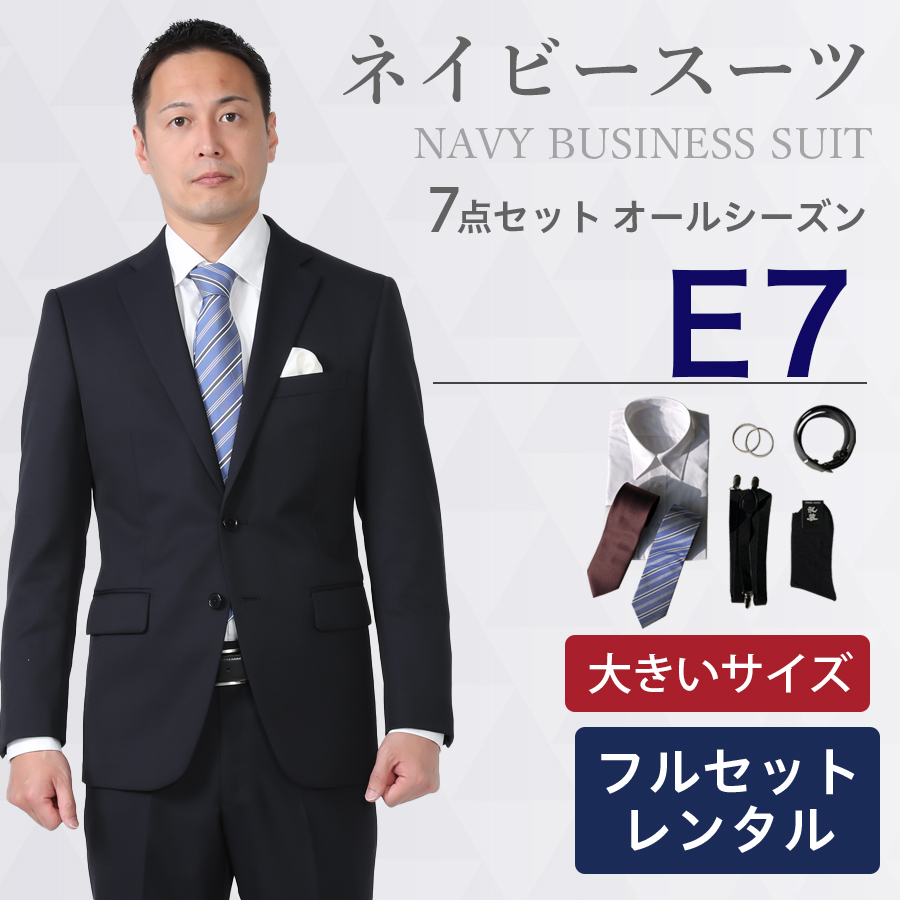 【E7サイズ】メンズ 大きいサイズ用ネイビースーツ7点セット 喪服・礼服・フォーマルレンタル