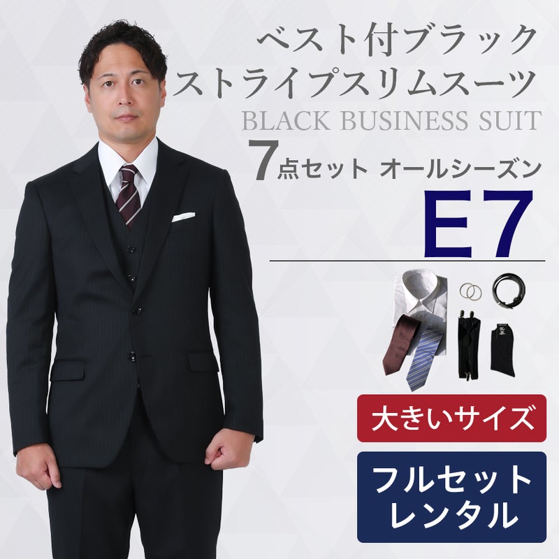 ★【大きいサイズ用】さまざまなシーンに対応するベスト付ブラックストライプスーツ・ウール混紡生地を使用し、柔らかさと質感も美しく晴れの日にぴったりの1着です。・かたちは細身のすっきりとしたシルエット。・仕事からリクルート、晴れの日(授業参観、七五三、成人式、結婚式)などなど幅広いシーンで活躍してくれること間違いありません!!