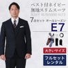 6. 【E7サイズ】メンズ 大きいサイズ用ベスト付ネイビー無地スリムスーツ7点セット 秋冬用スーツレンタル
