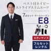 6. 【E8サイズ】メンズ 大きいサイズ用ベスト付ネイビーストライプスリムスーツ7点セット 秋冬用スーツレンタル