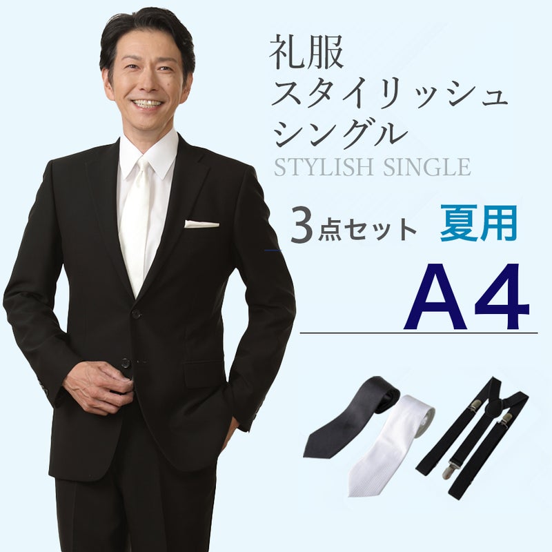 【A4サイズ】メンズ 夏用スタイリッシュシングル3点セット 喪服・礼服・フォーマルレンタル