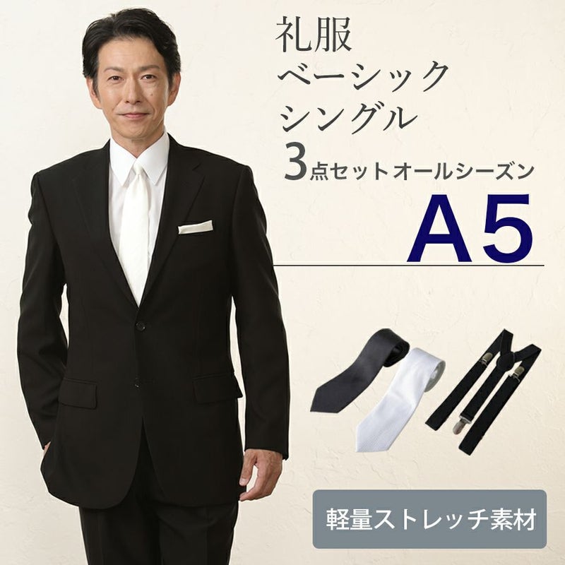 5. 【A5サイズ】メンズ ベーシックシングル軽量ストレッチ3点セット 喪服・礼服・フォーマルレンタル
