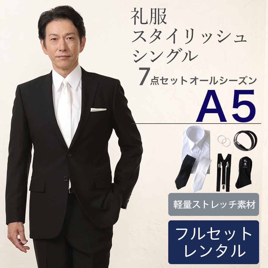 【A5サイズ】メンズ スタイリッシュシングル7点セット 喪服・礼服・フォーマルレンタル