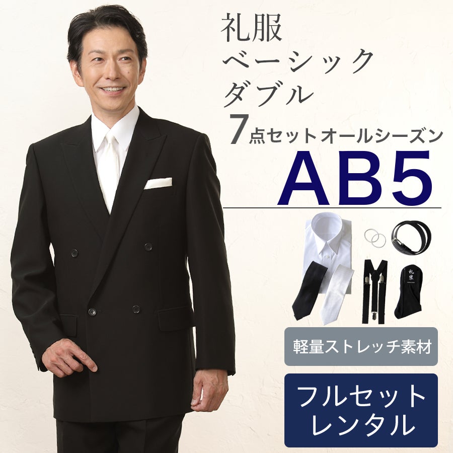 【AB5サイズ】メンズ ベーシックダブル軽量ストレッチ7点セット 喪服・礼服・フォーマルレンタル