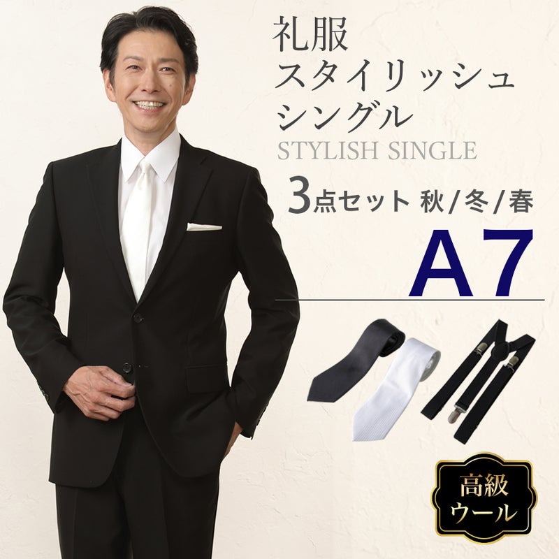 6. 【A7サイズ】メンズ ウール素材使用スタイリッシュシングル3点セット 喪服・礼服・フォーマルレンタル