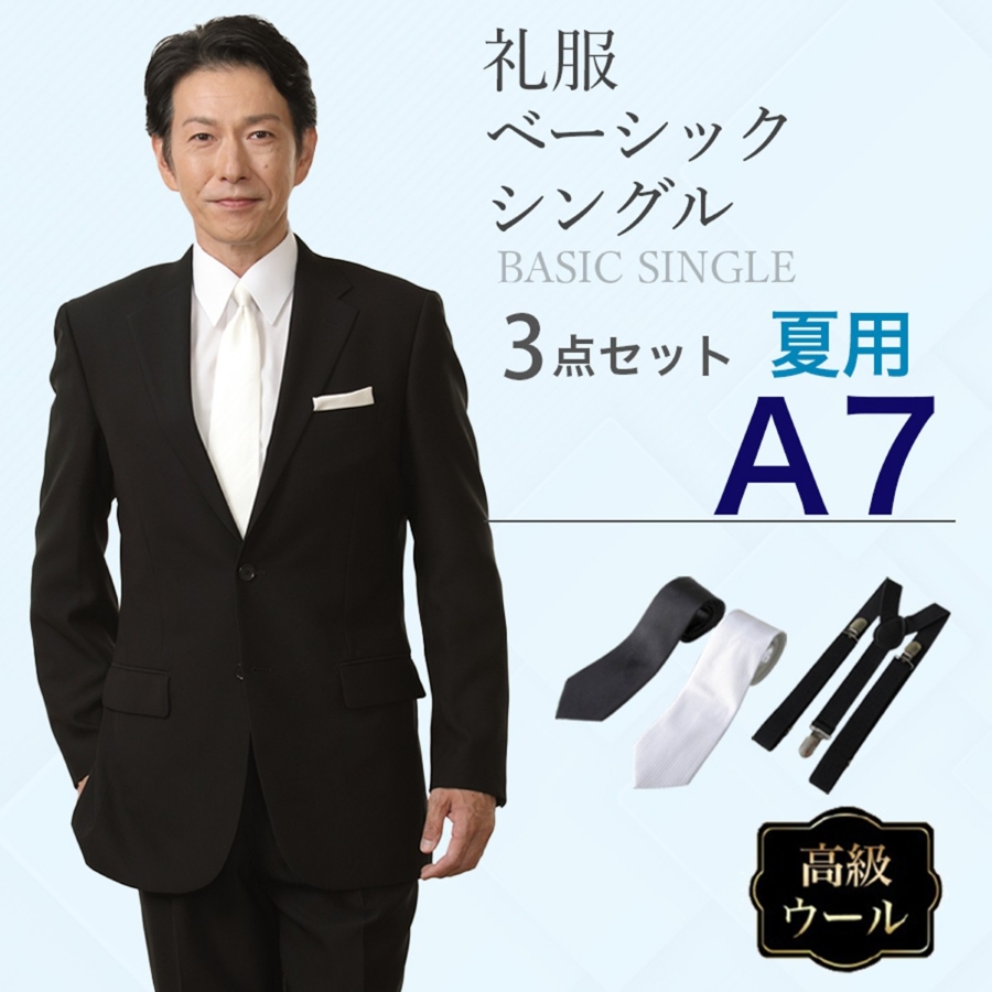 6. 【A7サイズ】メンズ 夏用ウール混素材使用ベーシックシングル3点セット 喪服・礼服・フォーマルレンタル
