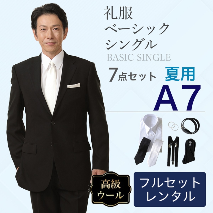【レンタル】夏用ベーシックシングル 7点セット [男性用] [喪服 レンタル] [礼服 レンタル] [フォーマル レンタル] [喪服 メンズ] [礼服 メンズ] [大きいサイズ] [葬儀] [結婚式] [夏物] [軽量] [涼しい] [翌日配送] [FOL-200-F]