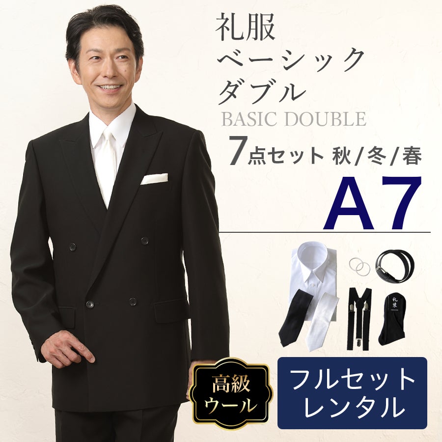 【A7サイズ】メンズ ウール素材使用ベーシックダブル7点セット 喪服・礼服・フォーマルレンタル