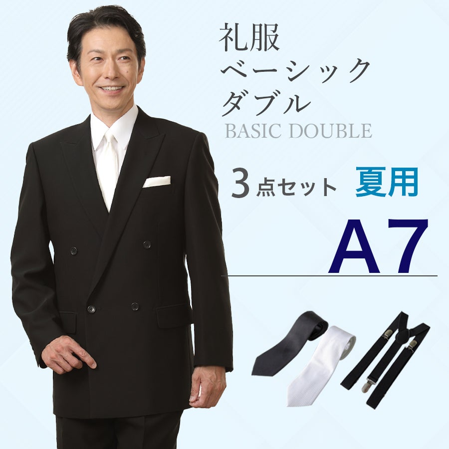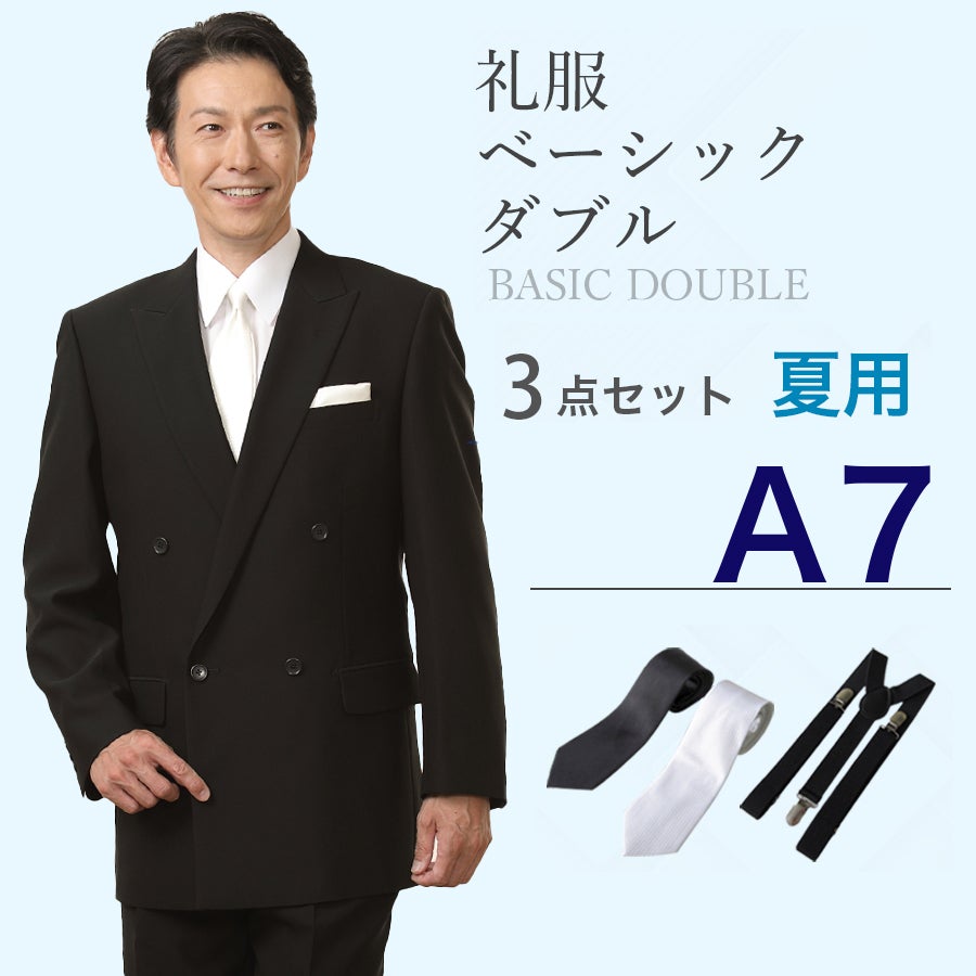 【A7サイズ】メンズ 夏用ベーシックダブル3点セット 喪服・礼服・フォーマルレンタル
