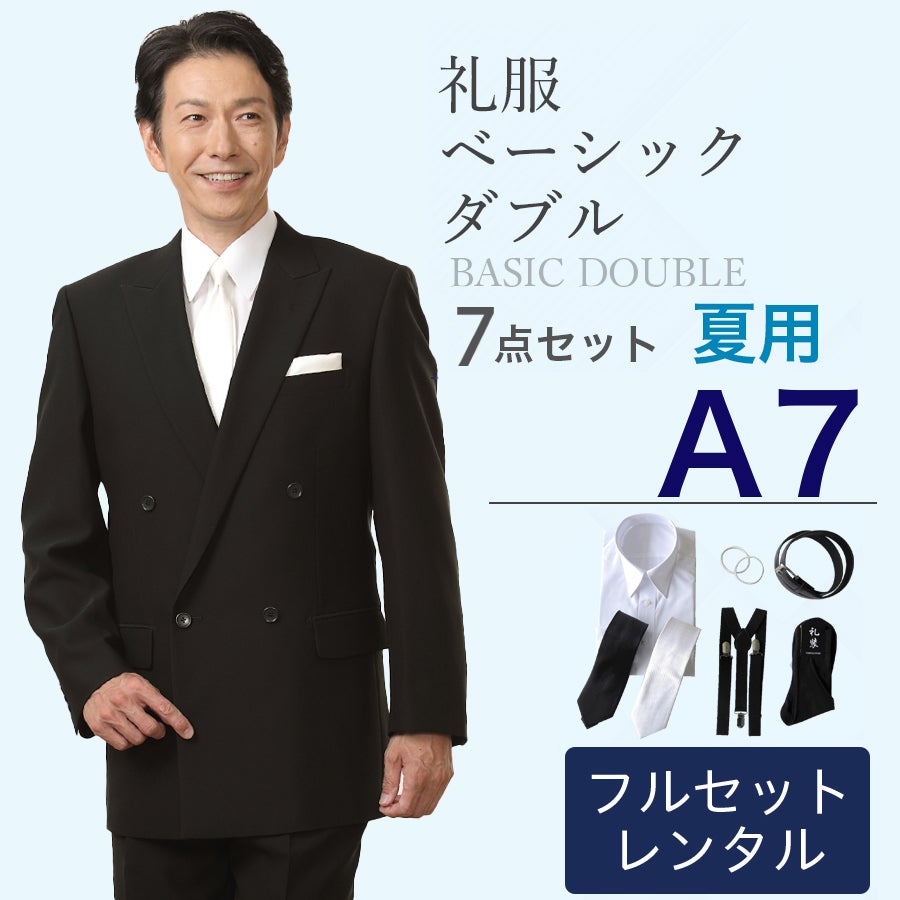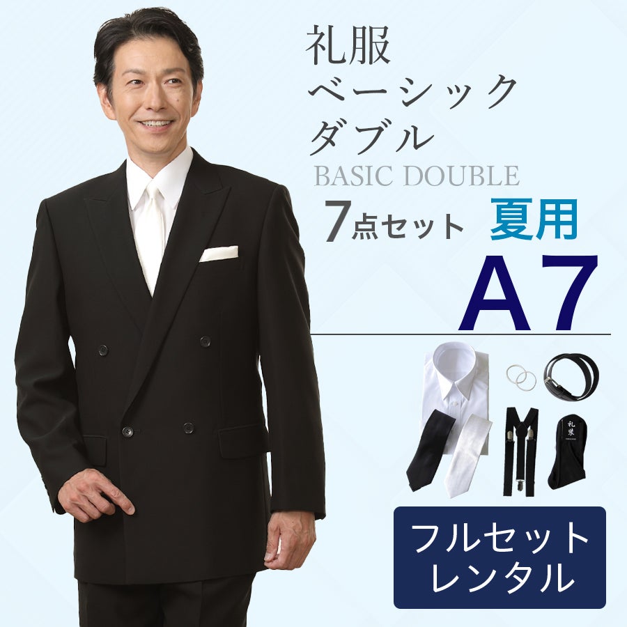 【A7サイズ】メンズ 夏用ベーシックダブル7点セット 喪服・礼服・フォーマルレンタル
