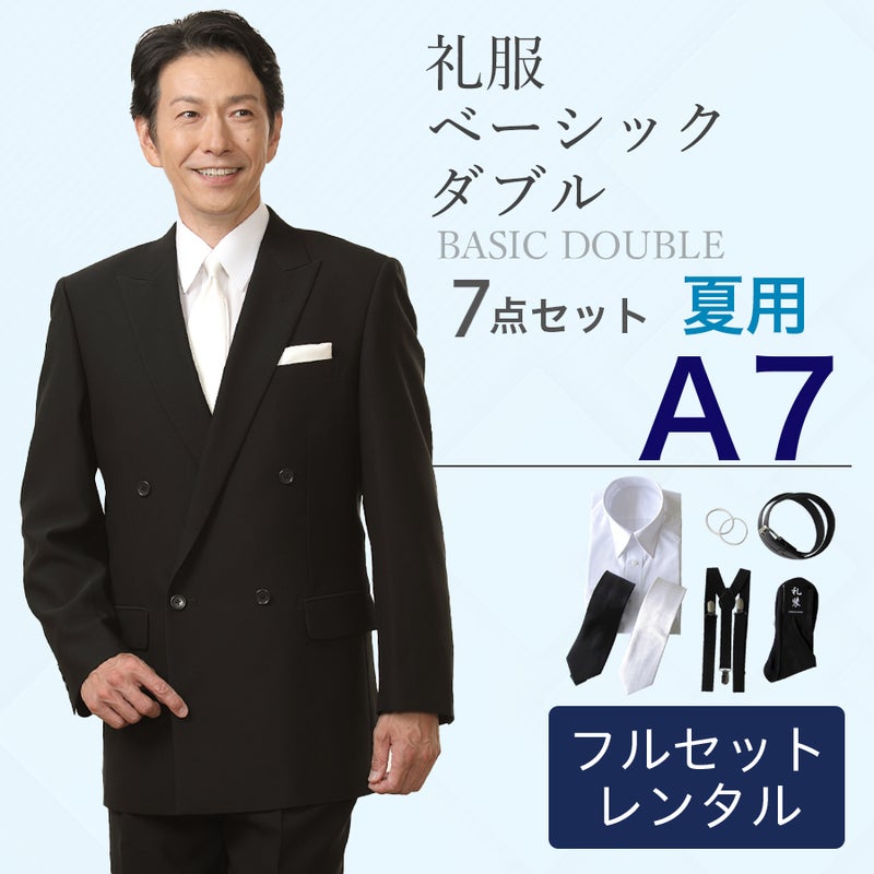 6. 【A7サイズ】メンズ 夏用ウール混素材使用ベーシックダブル7点セット 喪服・礼服・フォーマルレンタル