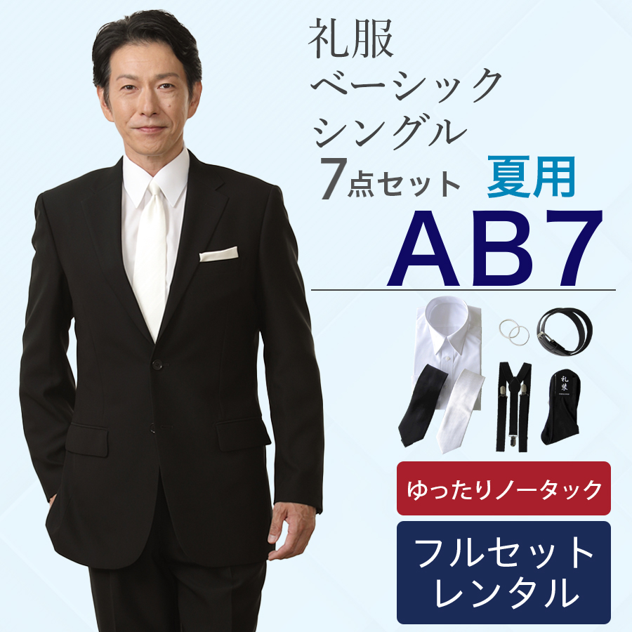 6. 【AB7サイズ】メンズ 夏用ゆったりノータックシングル7点セット 喪服・礼服・フォーマルレンタル