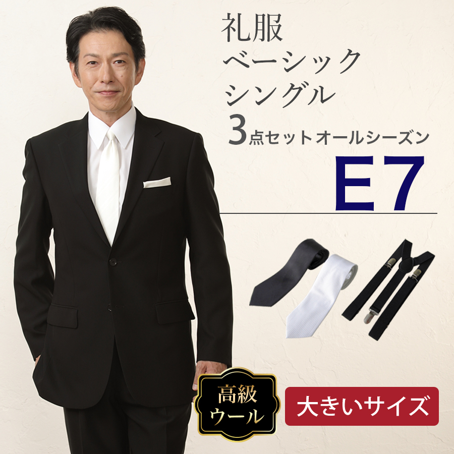 6. 【E7サイズ】メンズ 大きいサイズベーシックシングル3点セット 喪服・礼服・フォーマルレンタル
