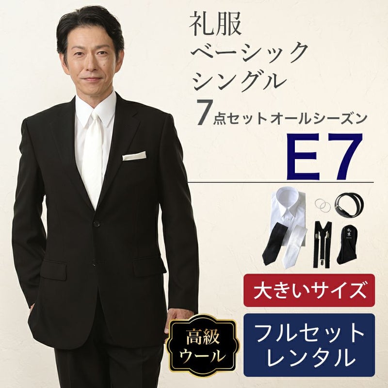 6. 【E7サイズ】メンズ 大きいサイズベーシックシングル7点セット 喪服・礼服・フォーマルレンタル
