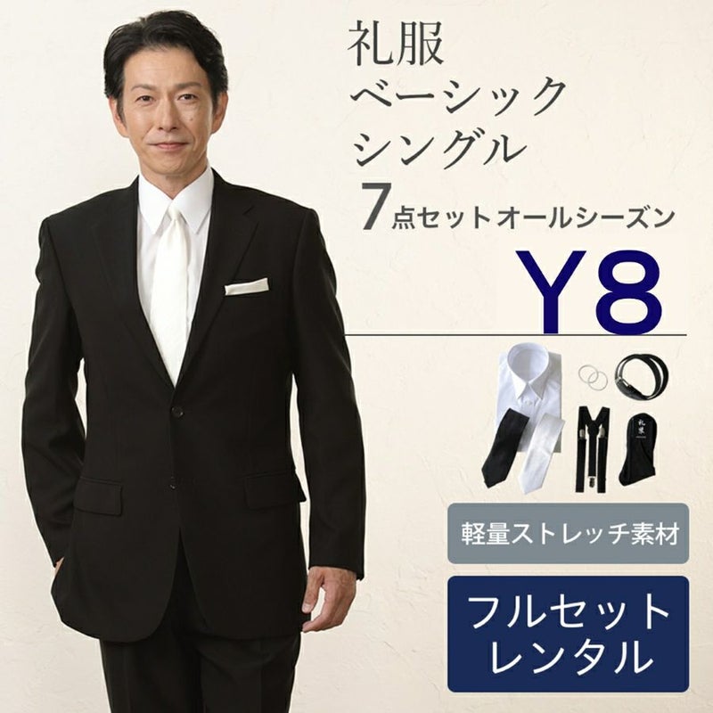 5. 【Y8サイズ】 メンズ ベーシックシングル軽量ストレッチ7点セット 喪服・礼服・フォーマルレンタル