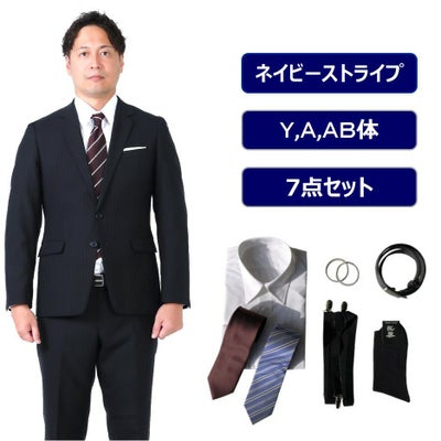 メンズ ネイビーストライプスリムスーツ7点セット レンタルスーツのレビュー