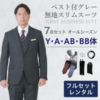 メンズ ベスト付グレー無地スリムスーツ7点セット 秋冬用レンタルスーツ