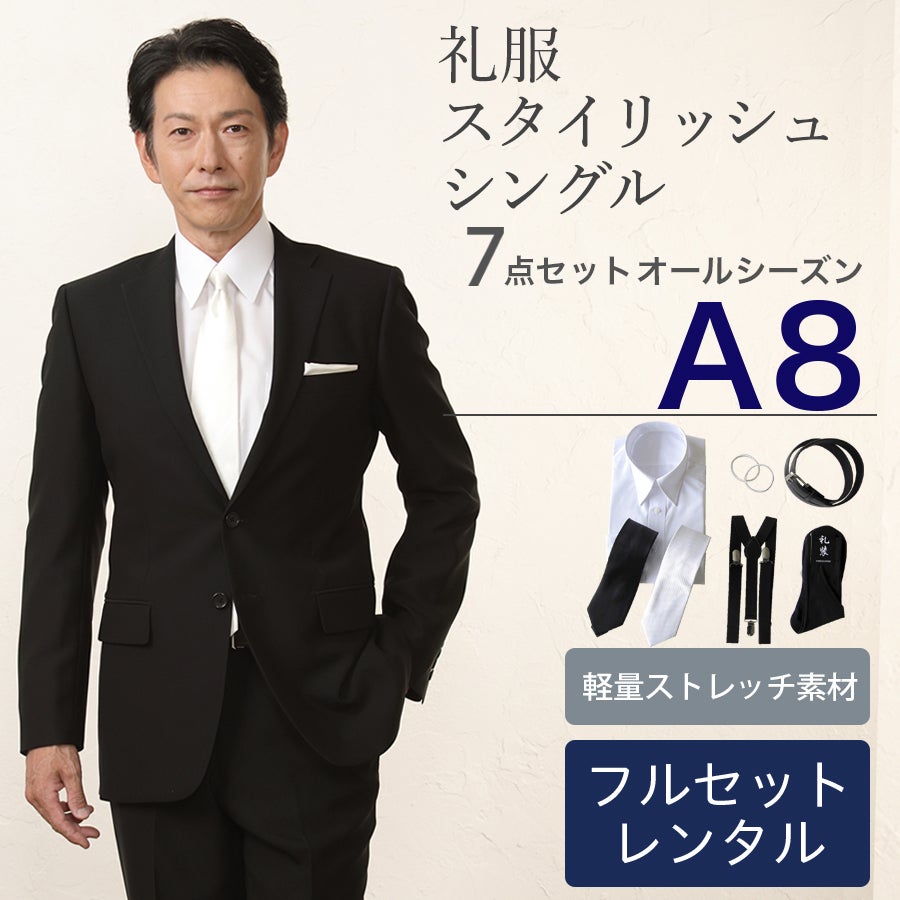 【A8サイズ】メンズ スタイリッシュシングル7点セット 喪服・礼服・フォーマルレンタル