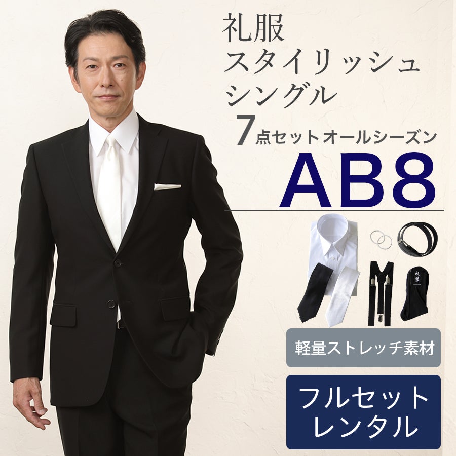 【AB8サイズ】メンズ スタイリッシュシングル7点セット 喪服・礼服・フォーマルレンタル